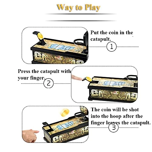 - Fun to Play: After the assembly of each parts, put a coin in the catapult and press it with the moderate force, the coin will be shot into the money box through the basketball hoop on the other side. Please note, coins can be taken out because there is a coin outlet in the bottom.