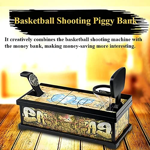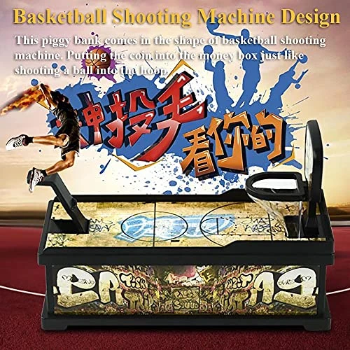 - Basketball Shooting Machine Design: The overall shape of the money bank is a basketball court including a hoop and a catapult. Put the coin in the catapult and press it, then the coin will be shot. If the force and angle are just right, the coin can drop into the money box through the hoop.