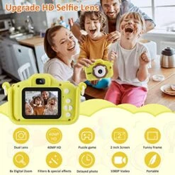 - 📷【2023 Upgrade Kids Digital Camera】Upgrade to dual HD lens for kids take higher quality photos. With better battery and chip, kid camera is stable and durable to used 3 hours continuously. It also has 1080P HD video, 8x digital zoom, continuous and timing shooting. The cute silicone sleeve provides effective shockproof and drop protection.