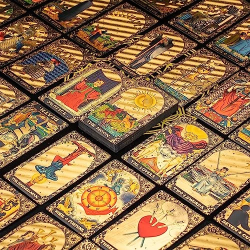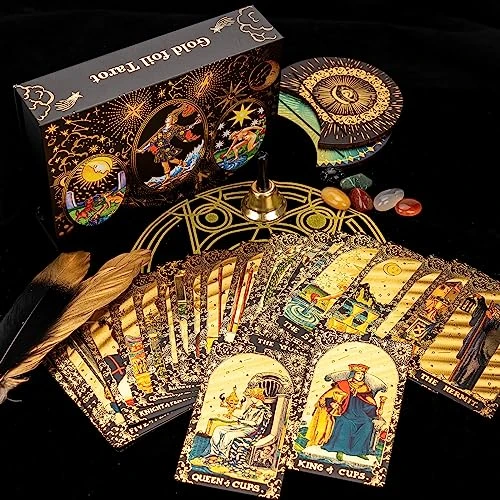 - 【Foil Durable Material】Tarot cards are made of gold foil PVC, which not only bends without damaging, but is also smooth without being scratched or leaving any scratches, and waterproof.The noble case is stored and not easily lost, so that every tarot lover can use it for a long time without replacing it.