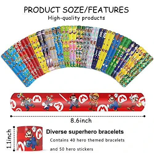 - Each toys slap bracelet measures 8.4 in, party decals are 2 inches to 3 inches in size, designed for teens, adults, kids, girls, adult.