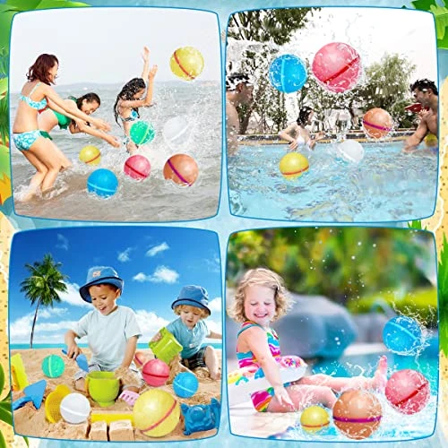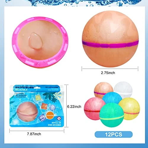 - 【Colorful Colors】A set of our reusable balloons has 12 pieces and 6 colors(2 Blue, 2 Green, 2 White,2 Orange,2 Red, and 2 Yellow balls) to meet the needs of users, ensuring that it attracts attention when playing at pool parties.