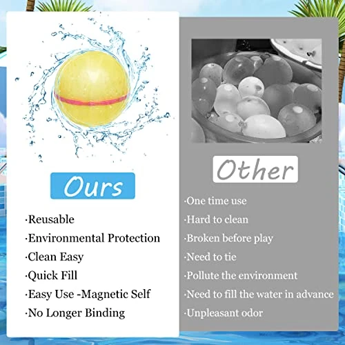 - 【Environment Friendly】Unlike traditional water balloons, these upgraded water balls are environmentally friendly.After use, you only need to store it, and it can still be used next time. No need to pick up tons of balloon pieces.