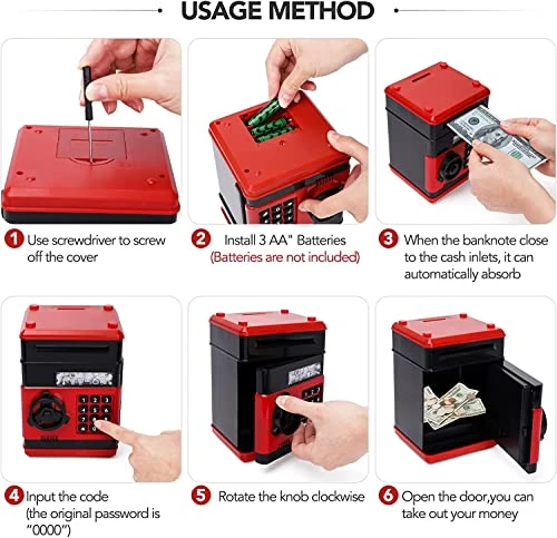 - 【The Function of The Piggy Bank】: It is protected with a 4-digit password. The initial password is “0000”. You can change it to any 4-digit password. Keep your little secret to yourself, lock them in this safe.