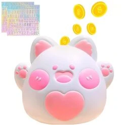 - APPROPRIATE SIZE: This piggy bank for kids is about 6.69 x 5.12 x 5.91 inches, accepts virtually all coins: Pennies, Nickels, Dimes, Quarters and Dollar Coins, perfect size for little children to hold or take away. The cute cat look makes it not only a money box, but also a perfect addition to any nursery decor or children’s room, and you can place it on any table or bookshelf.