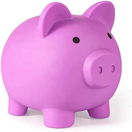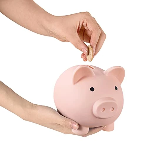 - Medium Size Piggy Bank – This money bank is about 5.5 x 4.9 x 4.7 inches, big enough to hold a lot of coins and cash, perfect size for little children to hold or take away.