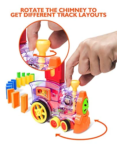 - Automatic Laying Function– Just put the dominoes in the card holder, turn on the switch to make the train to lay your domino trail (Need 2 AA Batteries, Not Included)