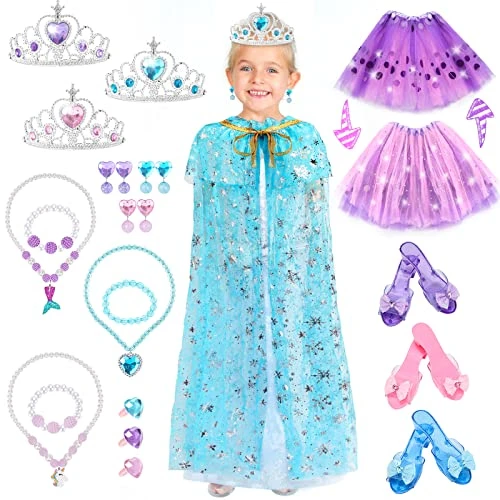 - âśż 21 PCS Princess Banquet Role Play Set – for Your Little Pretty & Elegant Princess. KUBUSFLY Princess boutique bundle includes 3 pairs of toddler girl sized Princess Heels Shoes, 1piece of 90cm Cloak, 1piece of Tutu Skirt, 3 Crowns, 3 pairs of Earrings, 3 Rings, 3 Bangles, 3 Necklaces and 1Exquisite gift box. Packaged in a beautiful pink storage box specially designed for little girls to make it neat and easily carry their princess set go anywhere.