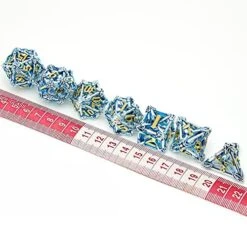 Hollow Metal DND Game Dice Flower Shaped Blue And Gold Numbers 7Pcs Set For Dungeons And Dragons RPG MTG Table Games D&D Pathfinder Shadowrun And Math Teaching(with Metal Case)