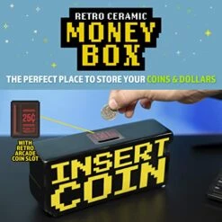 Paladone Retro Arcade Insert Coin Piggy Bank | Coin Bank Money Saver For Adults And Kids