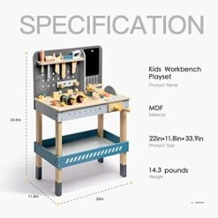 ROBUD Wooden Tool Workbench For Kids Toddlers, Toy Tools Set Gift For 3 4 5 6 7 Years Old And Up