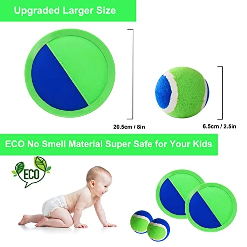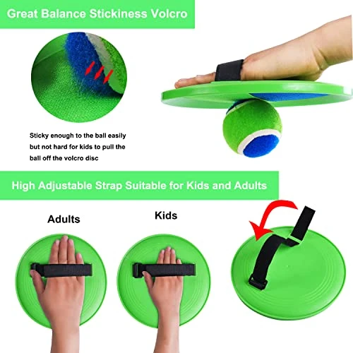 - Softer and High-quality Throw Sticky Catch Ball Set: We use comfort fabric and high elasticity rubber make the ball much softer with better stickiness, kids can catch the balls easily,will not lose their fun because they keep losing the ball. Always have a lot of fun.