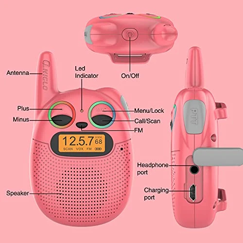 - 😻【Small Pink Walkie Talkies for Girls】- This kawaii walkie talkie watches for kids long range features a unique cat ear shape design. They are palm-sized, lightweight, and come equipped with lanyards and bands for each walkie talkie toys for kids. Children can use these walkie talkies Kids as communication watches, adding a cute and fashionable touch to their outfit.