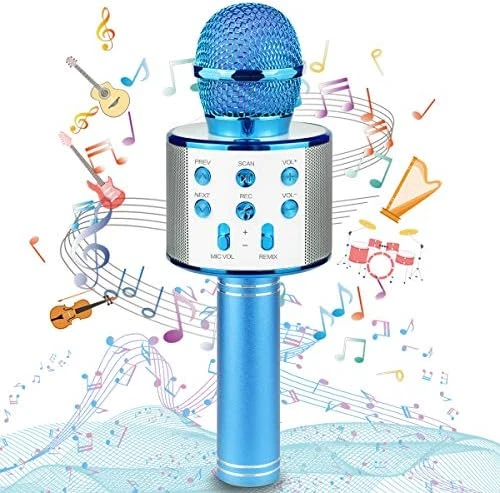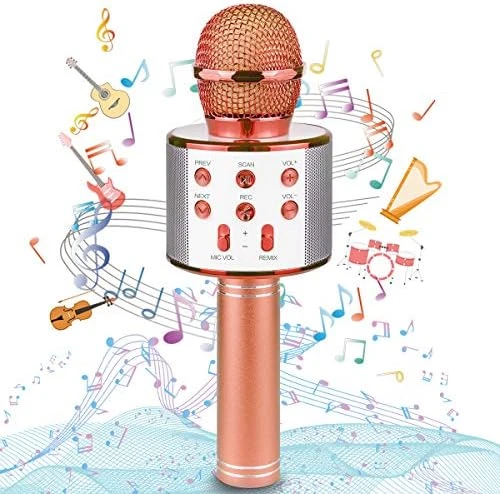 - 【Best Gift】Our goal is giving our customers the best shopping experience. With Lightweight and exquisite design and beautiful metal texture,Mic Speaker Machine are the perfect gifts for friends and children.Your child will use it to practice the sound and share it with others on any smart device. This is definitely an unexpected special gift! Great for KTV singing, gathering singing, family singing, travel singing, car stereo, interviews and live ect.