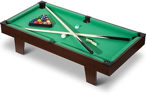 - STURDY & DURABLE – Quality engineered wood construction makes this mini billiard table sturdy and durable to withstand years of use. The table is also equipped with rubber cushion bumpers around the edges for a realistic playing experience on this mini pool table.