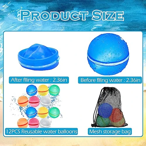 - ♻️ REFILLABLE&SELF SEALING BALLOONS: Summer quick fill water balloons adopt new technology, each balloons have 16 small powerful magnets, do not need faucet, seal tightly, save time and effort. Just sink the balloons into the water, it will be quick filled in 1-2 seconds, and it will open automatically when colliding or squeezing