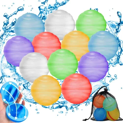 - 【Multiple Color & Funny】12pcs shell creative water toys balls with storage bag have mutli colors: white, red, yellow, blue, green, purple. Each water balloons bomb is 2.75in/7cm in diameter. These colorful aqua balls would be perfect outdoor toys for fun in summer, which makes you enjoy the summer party with your family and friends!