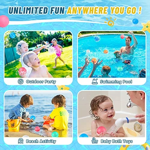 - 【Best Gift】The reusable water balloon will make a unique birthday party gift and water toy for boys and girls ages 3 4 5 6 7 8 and up for kids, adults, and even pets. Self-sealing water bomb suitable for a variety of water activities such as pools, oceans, beaches, lakes and rivers. Let the kids enjoy the cool outdoor games!