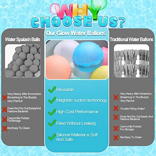- 🌊【Unique Design】🌊This water balloon uses magnetic adsorption technology, which allows it to be quickly filled, self-sealed, and not leaky, making it effortless for children and adults to use. It can create a very interesting water fight game in a shorter amount of time. Are you ready to enjoy the splashing summer with these magnetic technology-made water balloons?