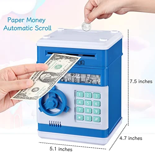 - 👍【Multi-function Safe Bank】Besides cash and coins, kids also can put some small personal precious items inside. Not only saving money, but it is also a password-safe box!