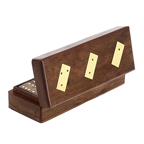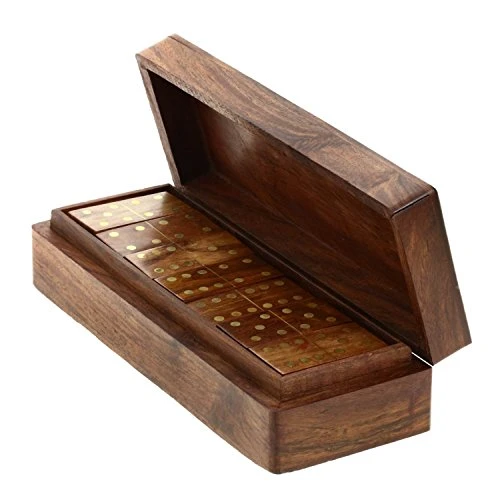 - TOURNAMENT SIZE DOMINOES SET – These are tournament (jumbo) size dominoes 28-piece block set and suitable for 2-4 players. Domino dimensions: 2 x 1 x 0.3 inches. Case dimensions: 8 x 3 x 2 inches. Dominoes blocks and carrying case are made from durable mango wood with brass inlay work. This dominoes set is a wooden handicraft produced with traditional techniques by Indian artisans. A great level of skill and attention to detail goes into the construction of this dominoes set, ensuring that it