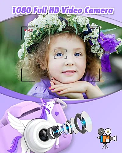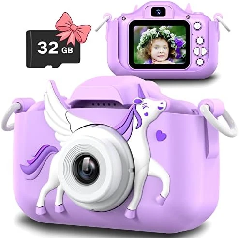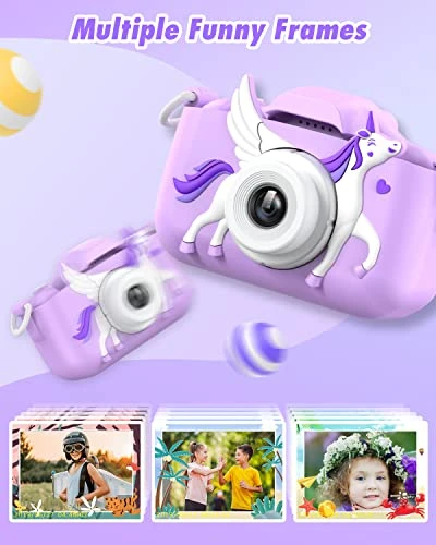 - Large Memory & Decorate Your Own Frame–The Children Camera is more than a kid toy,digital camera with large 32GB SD card which can store 5,000 pictures allows kids to shoot anywhere anytime, without being worried about which to delete in case of lack of memory.They can also decorate their Own Frame or favorite scene while taking photos(28 funny frames and various filters ).