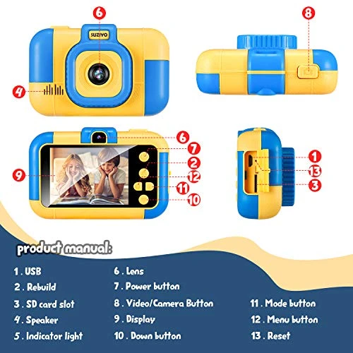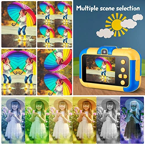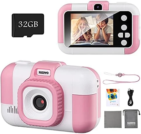 - 【Multi-functions】3 modes, 5 filters, 15 photo Frames selections, come with autofocus shooting, self-timer and time-lapse shooting, The automatic shutdown function can be selected in 2 seconds, 5 seconds,photos can be magnified 1-4 times, expandable storage capacity up to 32GB( the package within 32GB Micro SD card) – Bulit in 4 games,This not only a toy camera but a real camera to arouse child’s creativity and hobby.