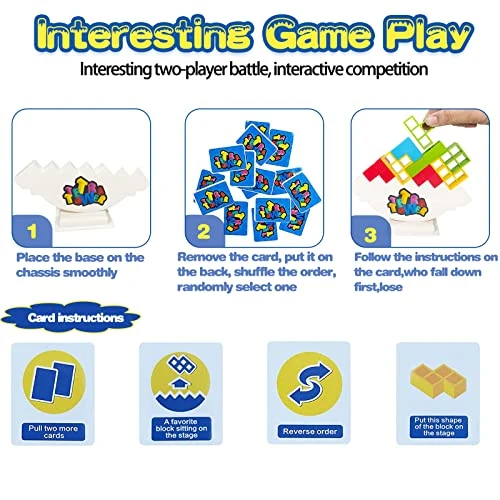 - 💫【Package Include】Toy stacking block sets has16 pcs balance blocks, 22 pcs game cards, 1 white base , 1 white chassis. 23*8*8cm ,150g,color packages.