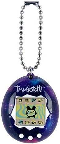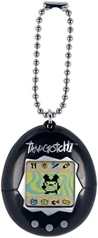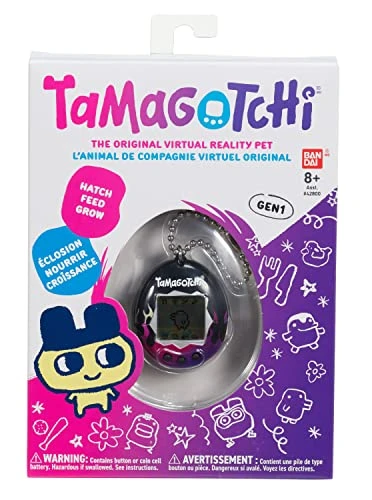 - COMES WITH Cool cosmic-colour flames design Tamagotchi on black, with black buttons. Has nostalgic original programming and characters; chain and battery included