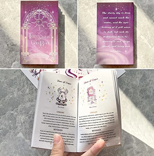 - ✦TAROT CARDS WITH GUIDEBOOK — With 94 pages of detailed information and pictures in the guidebook. Ours will answer every question in great detail, providing you with a deeper, more expansive understanding. The tarot cards for beginners and expert readers help people learn more about the past, present, and future. It reveals amazing connections and insights that help them solve their immediate worries and challenges.