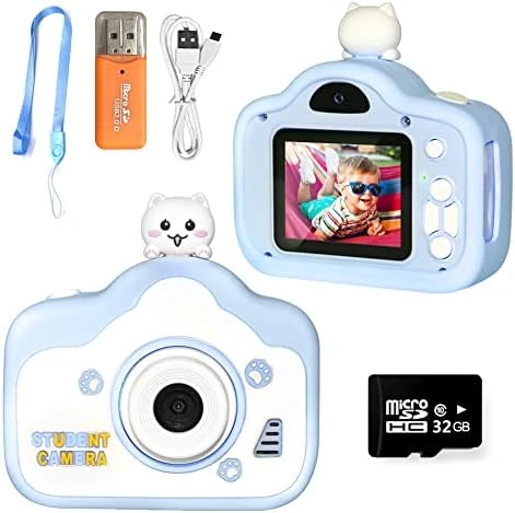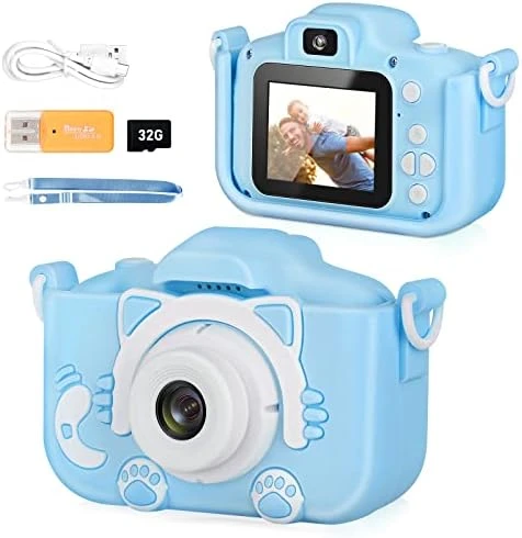 - 💙【What you will receive】It comes with: 1x digital camera for kids with Cartoon Protective, 1x Exquisite packing box, 1x USB Charging Cable, ,1x 32GB Memory Card, 1xCard reader, 1x Hanging Lanyard, 1x User manual. Environmental mater ial comes with safety standard and silky touch close to the skin. Protective shockproof Shell,lightweight and durable for kids.