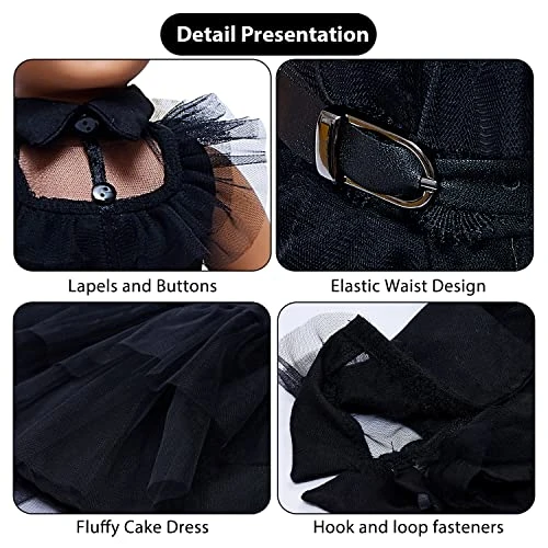 - 【Style Design】: this black dress dress originated from the classic character design of popular drama, with lapels and buttons design, sleeveless shoulders stacked with multiple layers of yarn, invisible back zipper design, so that the dress is easy to put on and take off, there are multiple layers of cake skirt can make the dress fluffy, waistband with elastic design, and with two belts can better go to trim the waistline. This is the perfect costume for Halloween family role play.